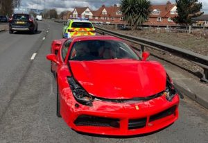 Jarkocrveni luksuzni sportski automobil, vjerovatno ferari 488, bio je jedini učesnik saobraćajne nezgode koja se dogodila u engleskom gradu Derbiju.