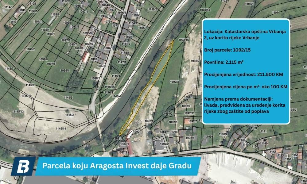 Vrijednost parcele u Vrbanji procijenjena je na 211.500 KM, odnosno približno 100 KM po kvadratnom metru.