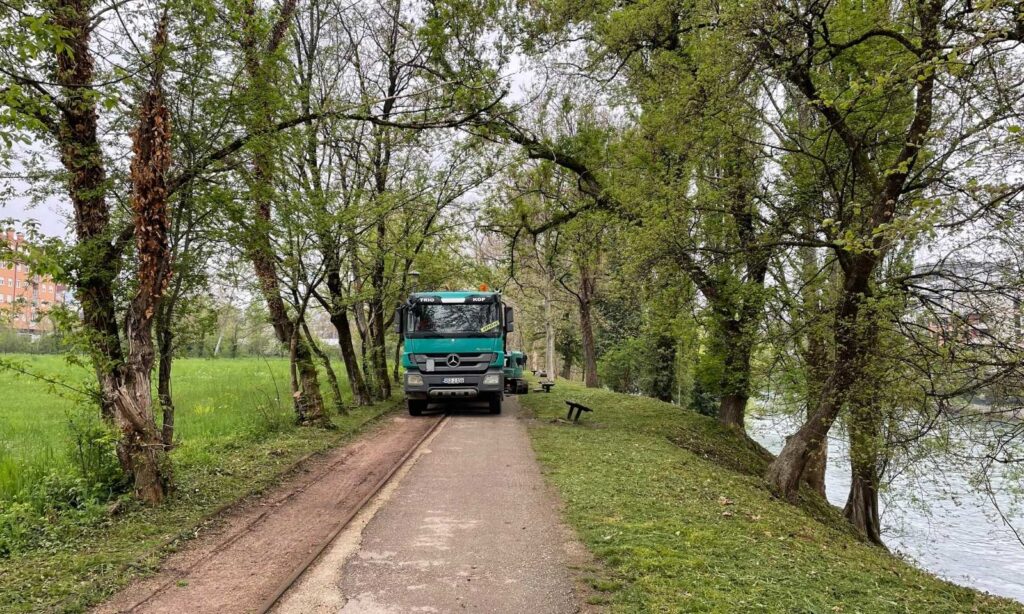 16.04.2026. | 09:14Radovi na uređenju šetališta uz Vrbas počeli su jutros na dionici od Venecije do Rebrovačkog mosta u Banjaluci, čime je praktično započeta realizacija projekta vrijednog 3,5 miliona KM koji će obuhvatiti i izgradnju novog i obnovu postojećeg dijela staze uz rijeku.
