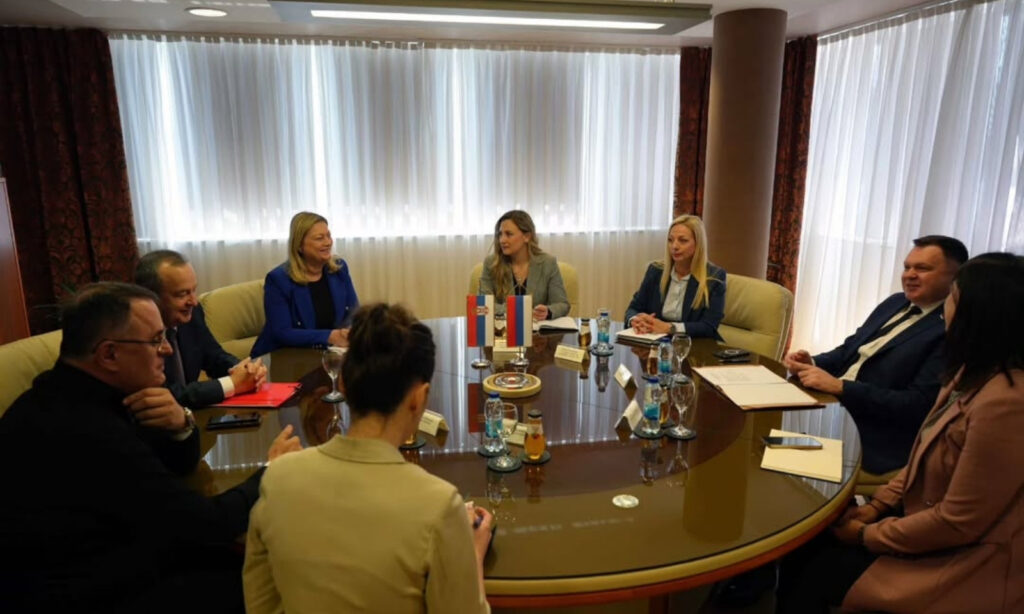 18.04.2026. | 11:55Ministar unutrašnjih poslova Republike Srpske Željko Budimir sastao se danas u Banjaluci sa potpredsjednikom Vlade i ministrom unutrašnjih poslova Republike Srbije Ivicom Dačićem, gdje su razgovarali o unaprjeđenju saradnje dva ministarstva u oblasti bezbjednosti.