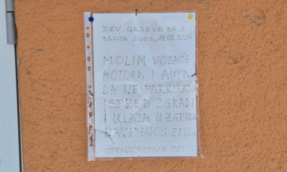 “Molimo vozače motora i auta da ne parkiraju ispred zgrade i ulaza u zgradu”, napisao je upravni odbor ZEV-a u Gajevoj ulici, ali ne kriju da malo ko to i pročita.