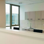 U suterenu objekta smješten je prijemno-dijagnostički blok i dnevna bolnica Klinike za hematologiju sa pratećim terapijskim prostorijama, kao i Odjeljenje za terapiju bola Klinike za anesteziju i intenzivno liječenje. Poseban tehnički iskorak predstavlja zona sa azotnim tankovima za čuvanje matičnih ćelija. Prizemlje je rezervisano za Kliniku za onkologiju i onkološki dio Klinike za plućne bolesti, gdje su uz moderno opremljene ambulante i ljekarske sobe smješteni i holistički osmišljeni prostori za savjetovanje pacijenata i administraciju.