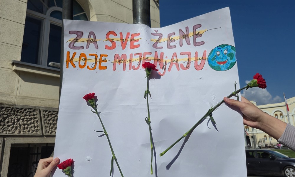 05.03.2026. | 13:23Za sve žene koje mijenjaju svijet, piše na transparentu koji su u Gospodskoj ulici u centru Banjaluke danas razvukli mladi Banjalučani.