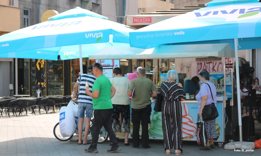 Vrućinu su spremno dočekali „čuveni“ prodavci sladoleda u centru Banjaluke, gdje smo zatekli red nestrpljivih građana koji čekaju svoj „kornet osvježenja“.