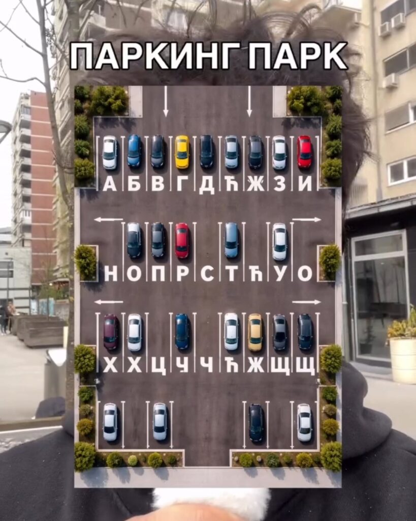 Jedna od ideja koju pominje je i takozvani „Ćirilični parking“, satirična verzija Ćiriličnog parka u Banjaluci, u kojem su postavljena velika slova azbuke.
