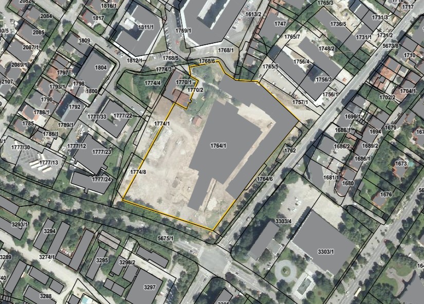 Katastarski plan dostavljen našoj redakciji pokazuje raspored parcela unutar kompleksa u centralnoj gradskoj zoni.