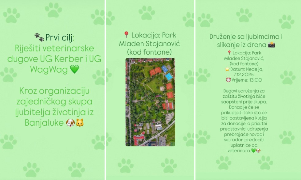 12.11.2025. | 14:24Banjalučki Park Mladen Stojanović, u nedjelju 7. decembra biće centar okupljanja svih ljubitelja životinja u gradu i okolini, jer je u 13 časova zakazano veliko druženje humanitarnog tipa.