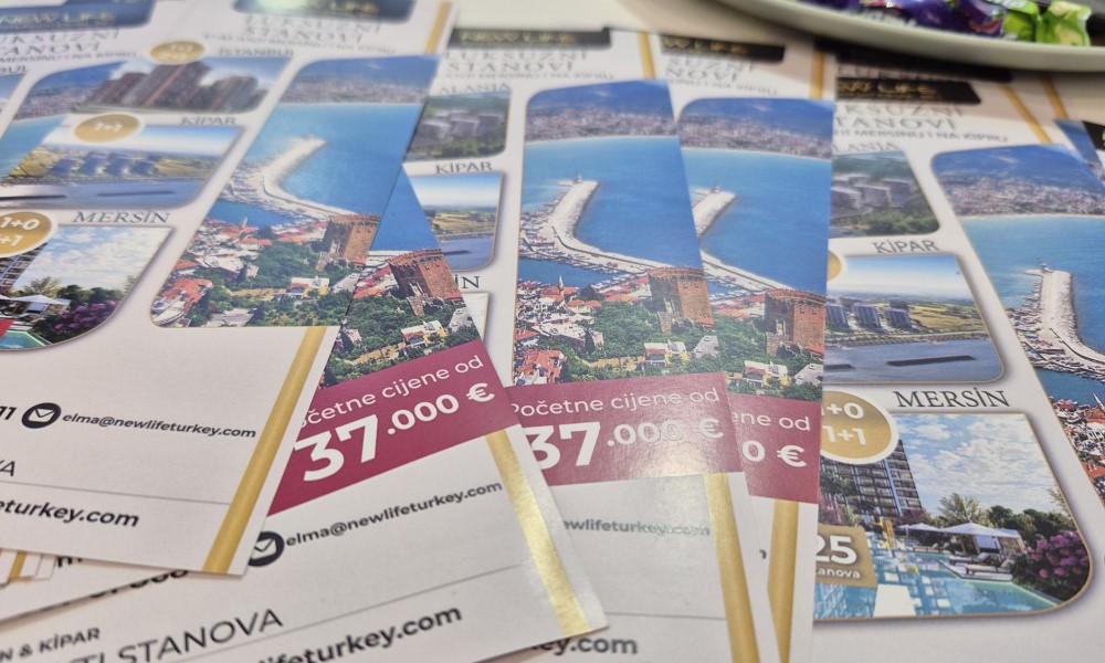 U ponudi na sajmu u Banjaluci imaju nekretnine sa početnom cijenom od 40.000 evra u gradu Mersin, na obali mora. To su novoizgrađeni kompleksi koji posjeduju sve sadržaje, po konceptu hotela sa pet zvjezdica.
