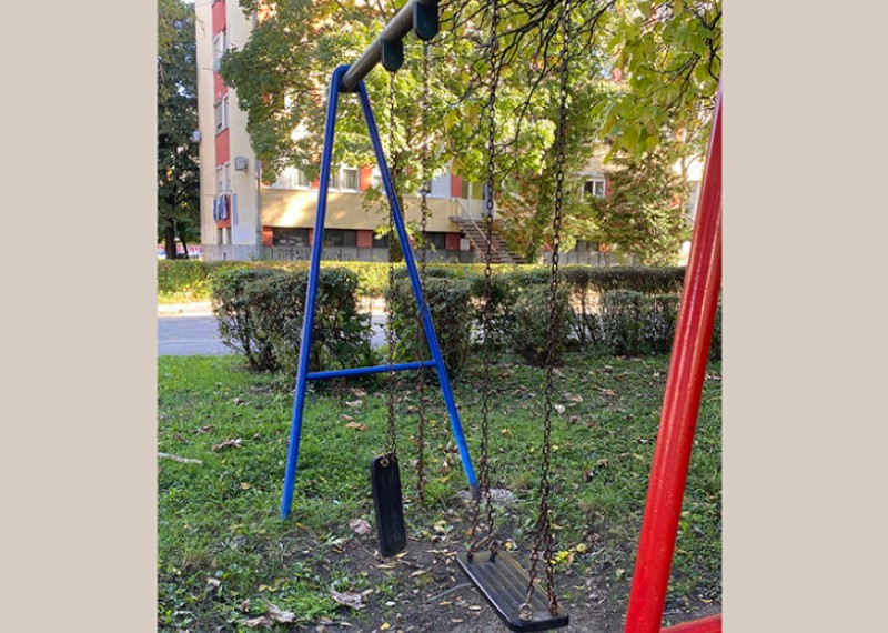 Na igralištu između stambenih zgrada u Novoj varoši klackalice, vrtuljci i ljuljaške su izgubile sjedišta, a njihovi ostaci vise i stoje bez ikakve mogućnosti za upotrebu bez rizika.