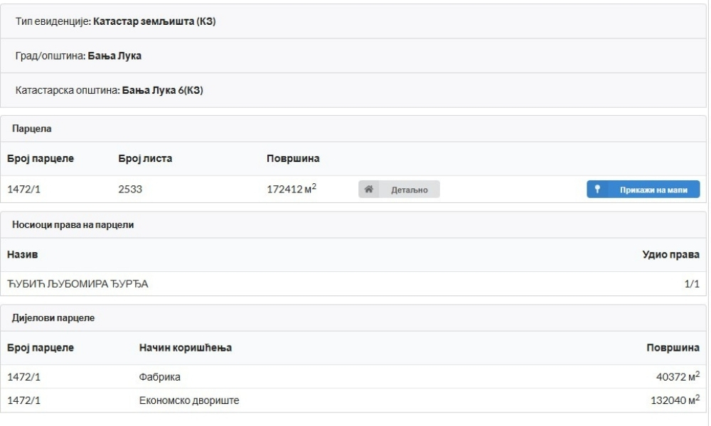 Prema podacima iz katastra, više parcela unutar obuhvata plana, uključujući i najveću, površine 172.412 kvadratnih metara, vodi se na Đurđu Ćubić.