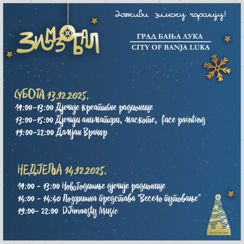 13.12.2025. | 09:13Uz bogatu gastronomsku ponudu u prekrasnom ambijentu Parka „Petar Kočić, subota, 13. decembar donosi zanimljiv program za najmlađe.