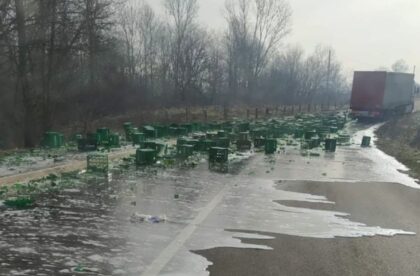 Saobraćajnica pliva u alkoholu: Prosuo se kamion pun piva