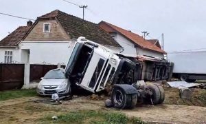 02.11.2022. | 12:47Noćas, pet minuta nakon ponoći, kamion s prikolicom sletio je s ceste u naselju Črnkovci kod Valpova u Hrvatskoj, prevrnuo se i udario u zid kuće. Poluprikolica kamiona je probila zid kuće i oštetila …