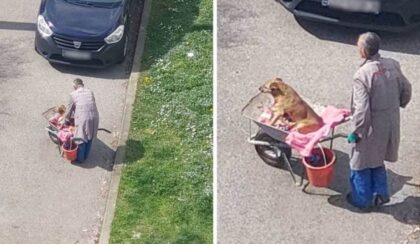 Dirljiva scena! Svaki dan u tačkama vozi starog i bolesnog psa na livadu
