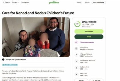 03.04.2026. | 14:59Za troje mališana koji su ostali iza sveštenika Nenada Mitrića i popadije Nedeljke dobri ljudi širom svijeta za kratko vrijeme prikupili su više od 100.000 KM. Naime, nakon vijesti o tragediji pokrenu…