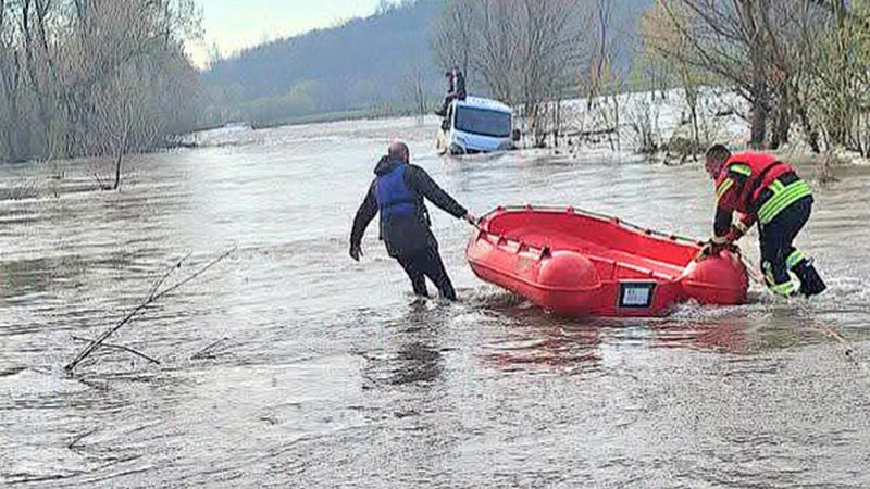 “Kombi je ubrzo zahvatila i povukla bujica”, izjavio je Petković i dodao da su lica evakuisana sa krova vozila.
