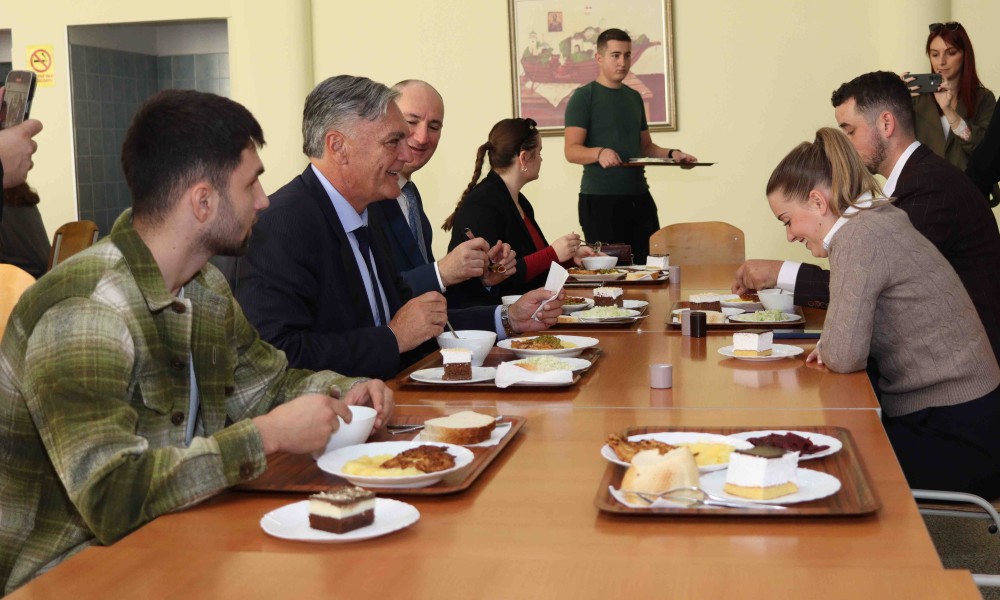 On je naveo da je ova ustanova uz podršku Vlade uspjela da zadrži cijenu ishrane u menzi od tri KM, navodeći da je doručak 0,60 KM, ručak 1,40 KM, a večera jednu KM.
