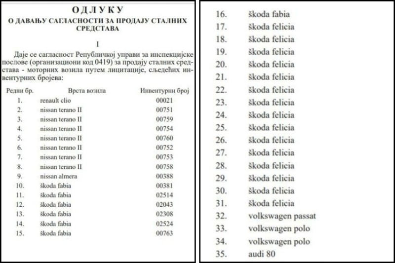 Pogledajte spisak: Inspektorat RS počeo prodaju 35 vozila FOTO