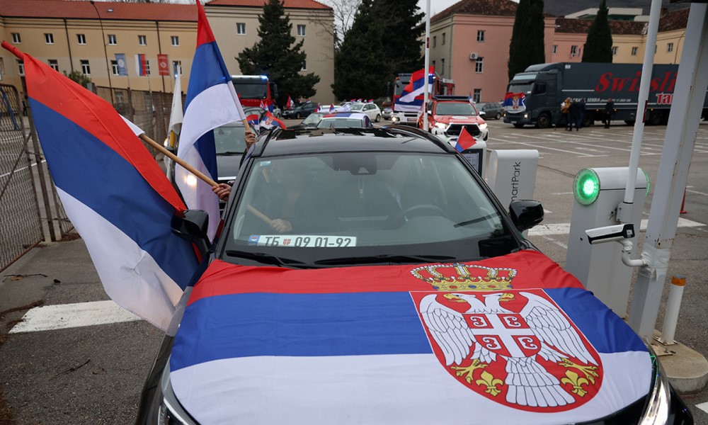 09.01.2026. | 16:54Ulicama Trebinja danas je prodefilovalo oko 100 automobila ukrašenih srpskim trobojkama povodom Dana Republike, 9. januara.