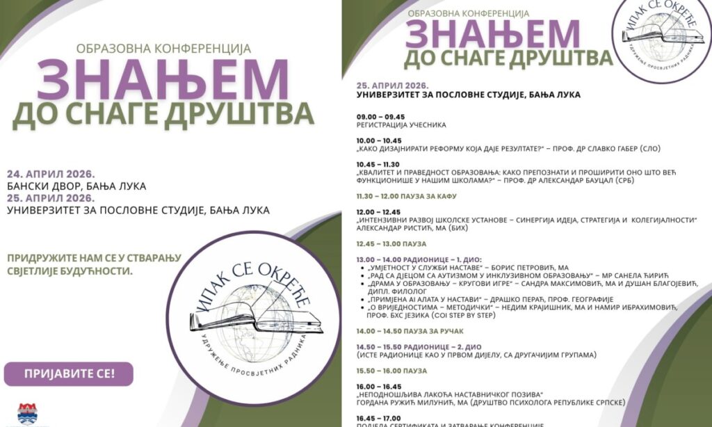 19.04.2026. | 07:28Sve je manje razumijevanja, a sve više odgovornosti i očekivanja i zato smo morali da se udružimo i pokušamo bar nešto da promijenimo – ovako za BL portal kaže profesorica banjalučke Gimnazije Branka Ljubojević, iza koje stoje godine prosvjetnog staža, ali i ovogodišnja nagrada “Najinspirativnija Banjalučanka”.
