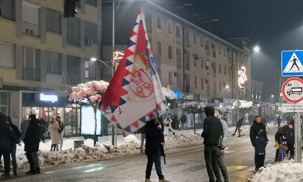 09.01.2026. | 18:19Navijačka grupa “Vojvode 1990” iz Doboja večeras je u centru grada priredila bakljadu proslavljajući 9. januar, Dan Republike Srpske.