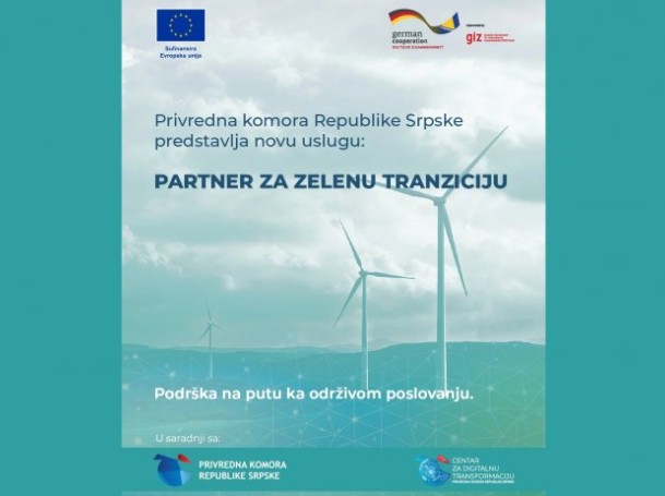 Usluga “Partner za zelenu tranziciju” uvedena je u okviru projekta “Digitalno održiva zelena tranzicija malih i srednjih preduzeća u Republici Srpskoj” /Di Green SMEs/, koji se realizuje putem Inicijative za razvoj privatnog sektora u BiH, uz finansijsku podršku EU i Vlade NJemačke.