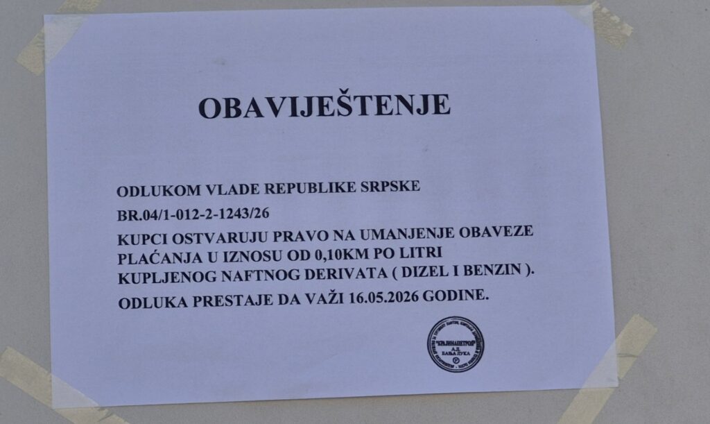 Mjera Vlade Republike Srpske, koja podrazumijeva povrat dijela sredstava za gorivo, na snazi će biti do 16. maja.