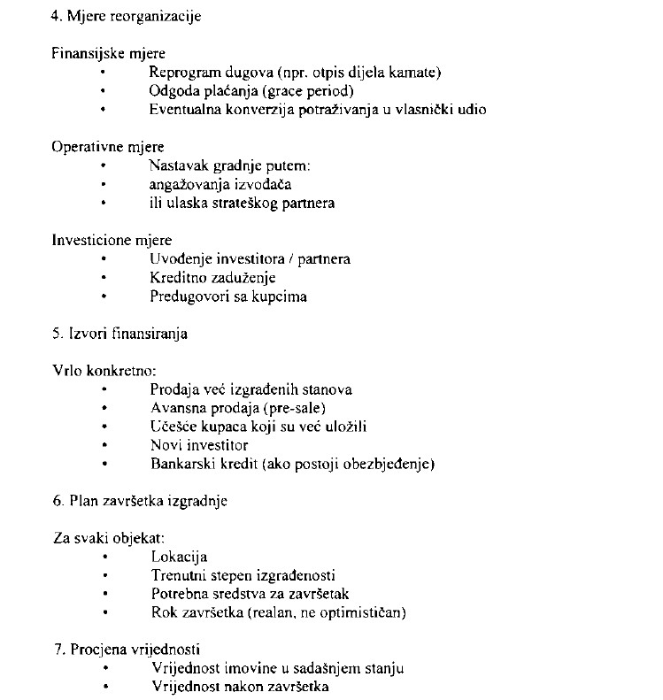 Dio iz plana reorganizacije