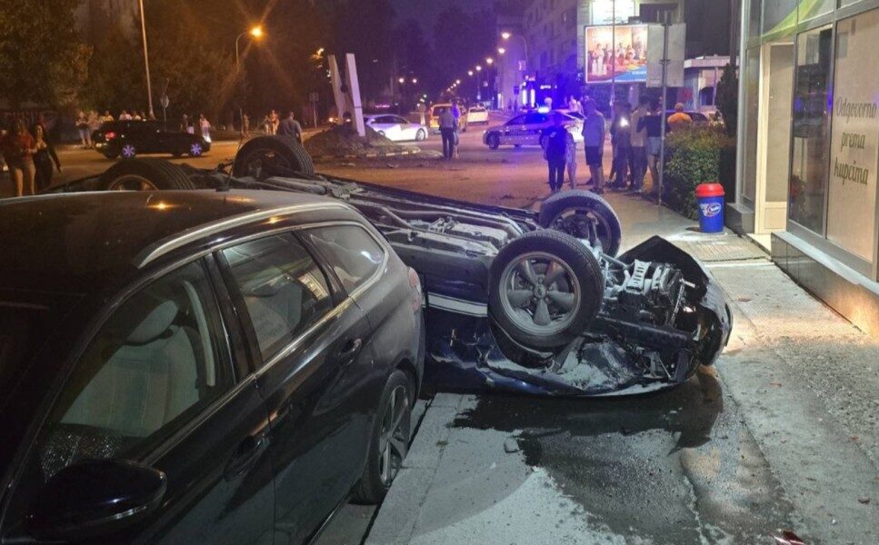 Strašan sudar u centru Banjaluke: “Mustang” završio na krovu FOTO/VIDEO