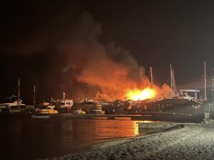 Požar u luci kod Tivta: Vatra zahvatila dvije veće jahte, oštećen i brod FOTO