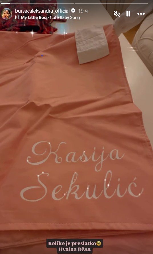 Aleksandra Bursać je ime za nasljednicu otkrila putem svog Instagram profila snimajući benkice i odjelca koja je pripremila za naslednicu, a na jednom od njih izvezeno je „Kasija Sekulić“.