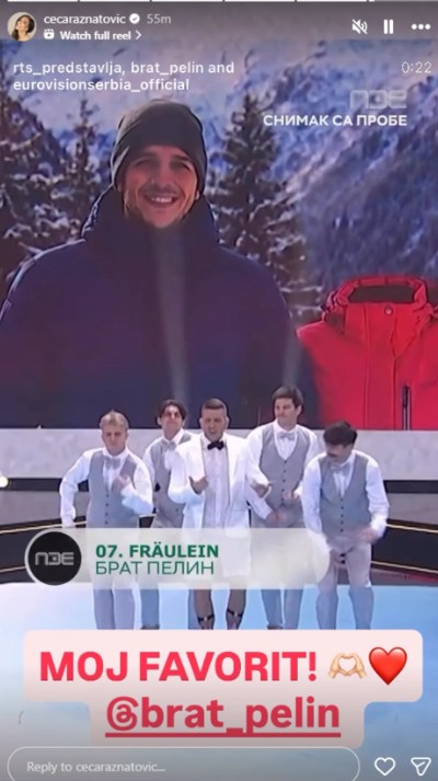 Naime, Ceca Ražnatović je na svom Instagram profilu podijelila snimak nastupa influensera Stefana Papića, javnosti poznatijeg kao Brat Pelin, koji se na PZE 2026 predstavlja numerom “Fräulein”.