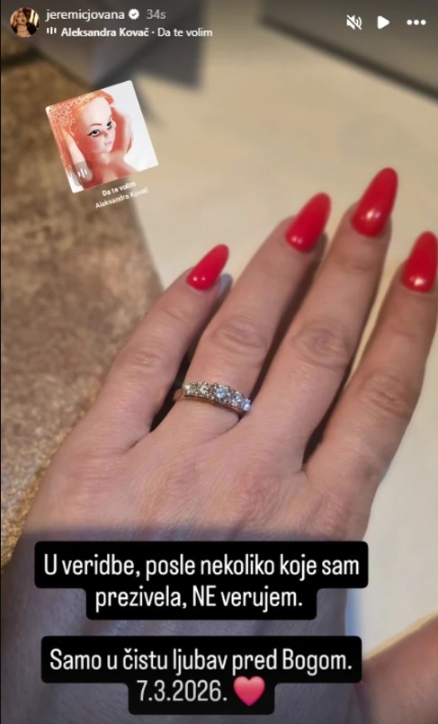 Jovana se tim povodom oglasila i otkrila detalje vjeridbe koja, kako objašnjava, nije klasična.