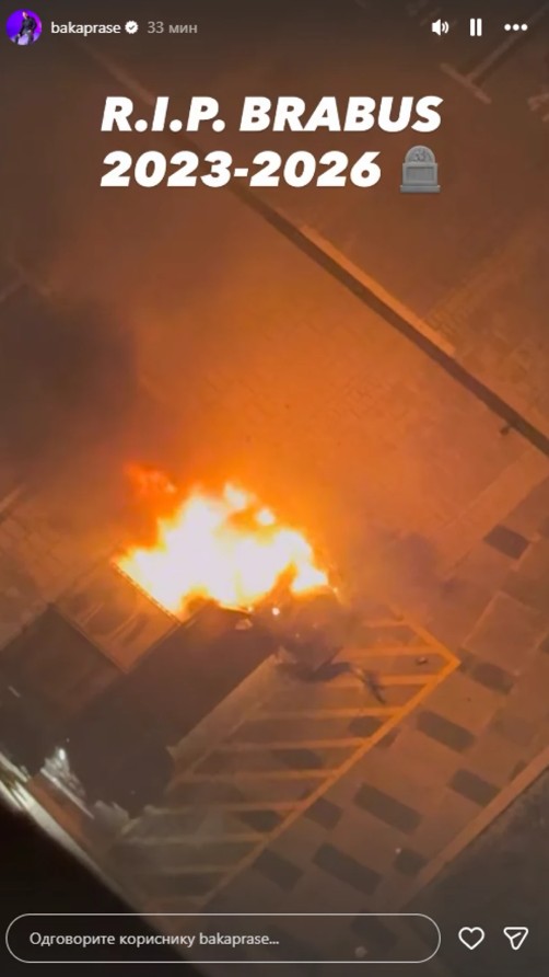 16.02.2026. | 08:51Jutjuberu Bogdanu Iliću poznatijem kao Baka Prase izgorio je skupocjeni automobil rano jutros u Beogradu na vodi.