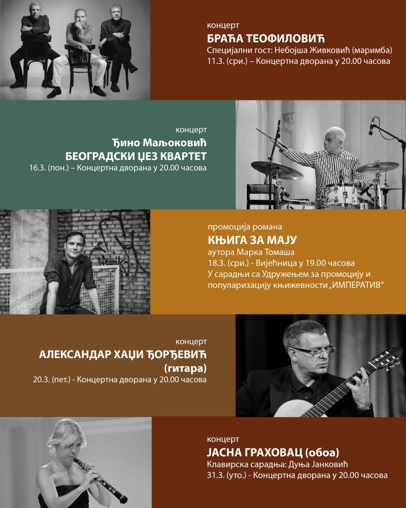 U ponedjeljak, 16. marta, u Banjaluku dolazi još jedan poznat sastav: Beogradski kvartet Miodraga Đine Maljokovića. Ovaj sastav čine Strahinja Banović – truba, Miroslav Šarbanović – kontrabas, Milovan Paunović – klavir i Đino Maljoković – bubnjevi. Repertoar koncerta će činiti autorske kompozicije, kao i klasici džez muzike.