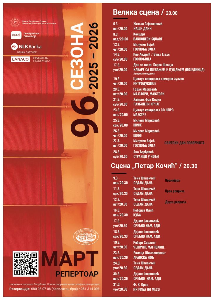 03.03.2026. | 11:38Mart donosi bogat i raznovrstan repertoar za sve ljubitelje pozorišta.