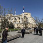 Postrojeni policijski službenici nalaze se i ispred Banskog dvora, gdje bi, kako BL portal saznaje, trebalo da oko 15 časova bude održana panel diskusija sa privrednicima iz Republike Srpske.