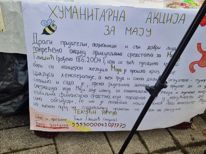 15.11.2025. | 16:31Učenici Osnovne škole “Nikola Tesla” iz Dervente pokrenuli su akciju prkupljanja pomoći za sugrađanku Maju Glišić, koja se bori sa tumorom.