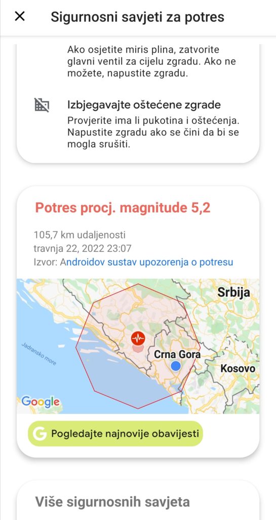 Građani koji su dobili notifikaciju su korisnici Android uređaja jer se radio Androidovom sistemu za upozorenje na zemljotrese koji je pokrenut u junu 2021.