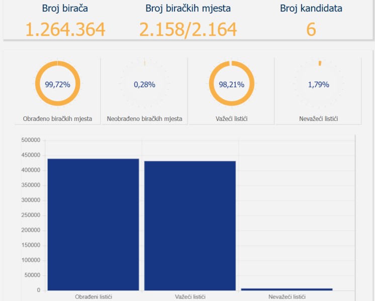 24.11.2025. | 11:31Prema podacima CIK-a, na jučerašnjim prijevremenim izborima za predsjednika Republike Srpske bilo je 1,79 odsto nevažećih glasačkih listića, što je 7.862 od ukupnog broja glasova.