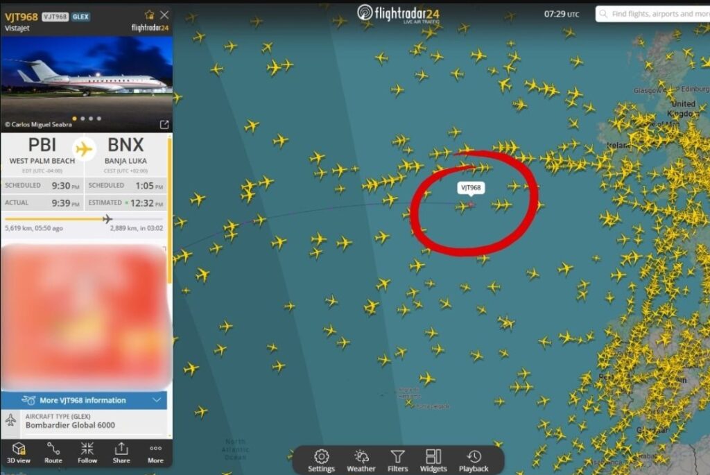 07.04.2026. | 09:41Donald Tramp Mlađi danas bi trebalo da dođe u Banjaluku, a prema podacima sajta “Flightradar24” trenutno ka banjalučkom Aerodromu leti avion iz Sjedinjenih Američkih Država.