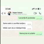 Ona je između ostalog, objavila i dio razgovora gdje joj Dejan Vukšić piše: “sama sebi si završila karijeru“, na to ona njemu odgovora – “nemoj da mi prijetiš“.