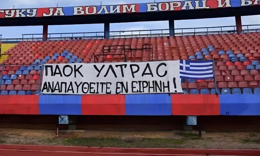 Na tribini je istaknut barjak sa porukom ispisanom na grčkom jeziku, kojom su Lešinari izrazili poštovanje i saučešće povodom tragične smrti navijača solunskog kluba. Poruka je, prema objavama na društvenim mrežama, simbol solidarnosti i bratstva među navijačima, bez obzira na klupske i državne granice.