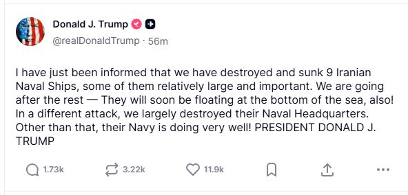 Tramp je rekao da je u drugom napadu uništen štab iranske mornarice.