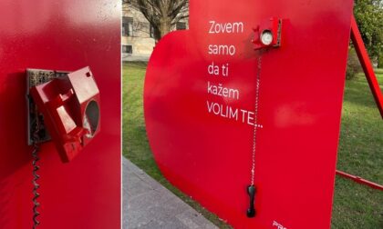 23.02.2026. | 16:09Instalacija postavljena povodom Dana zaljubljenih u centru Banjaluke, između Banskog dvora i Gradske uprave, oštećena je svega nekoliko dana nakon postavljanja. Na crvenoj podlozi sa porukom „Zovem sa…