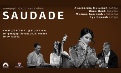 14.02.2026. | 08:58U Koncertnoj dvorani Banskog dvora 20. februara u 20.00 časova biće održan koncert fado ansambla SAUDADE, kojeg su publika i mediji prepoznali kao značajnog izvođača fado muzike u regionu. Sastav čine…