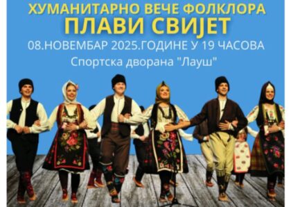 04.11.2025. | 07:58Humanitarno veče folklora u organizaciji Udruženja „Plavi svijet“ biće održano u subotu, 8. novembra u Sportskoj dvorani Lauš sa početkom u 19.00 časova. – Sav prihod od donacija biće usmjeren za podr…