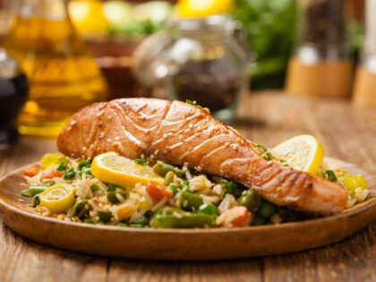 17.11.2025. | 06:50Danas vam donosimo recept za pripremu lososa sa rižom i povrćem. Sastojci: 300 g svježeg filea lososa 200 g mješavine graška i mrkve 150 g basmati riže 1 kašika putera 1 kašika maslinovog ulja sok pol…