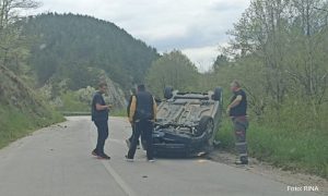 Saobraćajna nezgoda u rizičnoj klisuri: Automobil prevrnut na krov stoji nasred kolovoza