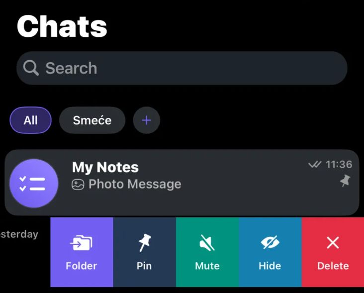 Kada želite da sakrijete Viber razgovor, dovoljno je da ga zadržite prstom ili prevučete na lijevo, a zatim izaberete opciju “Hide”.